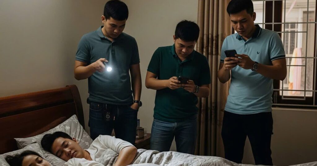 Đêm đó, Minh dẫn thêm vài người bạn tới, mở cửa phòng, bật đèn pin, chụp lại cảnh Hạnh đang ngủ, còn Hùng thì đứng luống cuống bên giường. Anh ta hí hửng gửi hình cho luật sư, chuẩn bị hồ sơ chia tay với lý do Hạnh không chung thủy.